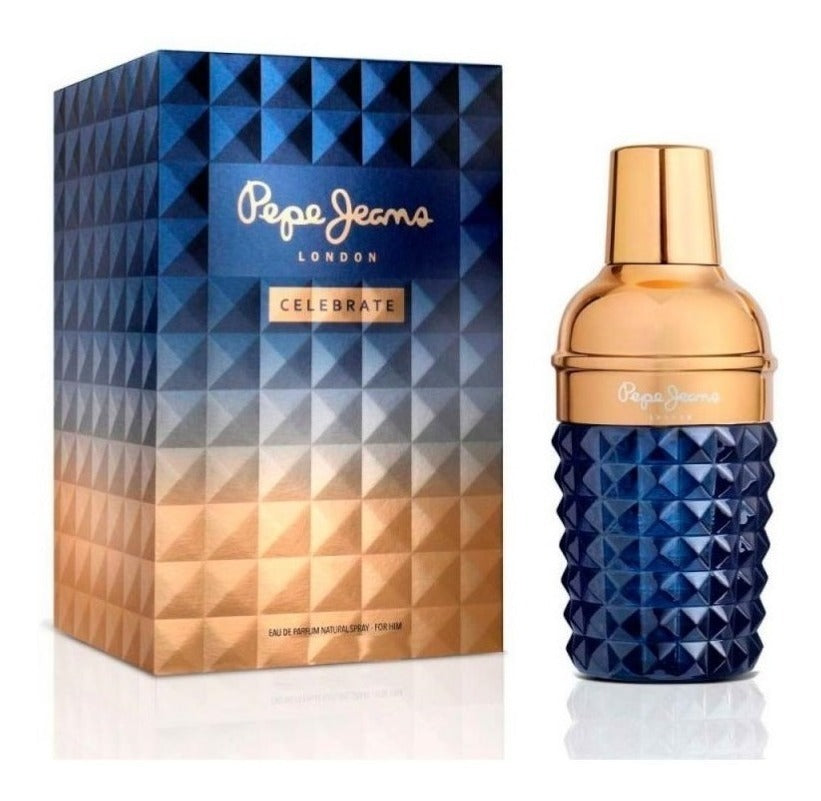 Pepe Jeans Celebrate for Him de Pepe Jeans London es una fragancia de la familia olfativa Aromática Especiada para Hombres. Pepe Jeans Celebrate for Him se lanzó en 2019. La Nariz detrás de esta fragrancia es Jerome Di Marino. Las Notas de Salida son grosellas negras y lima (limón verde); las Notas de Corazón son cacao, haba tonka, canela, esclarea y enebro de Virginia; las Notas de Fondo son Amberwood, pachulí y abedul.