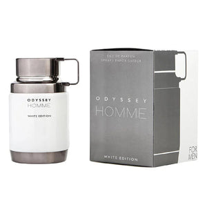 Odyssey Homme White Edition de Armaf es una fragancia de la familia olfativa Ámbar Fougère para Hombres. Las Notas de Salida son pimienta rosa, toronja (pomelo) y yuzu; las Notas de Corazón son hojas de violeta y notas marinas; las Notas de Fondo son ámbar, Amberwood y madera de gaiac.