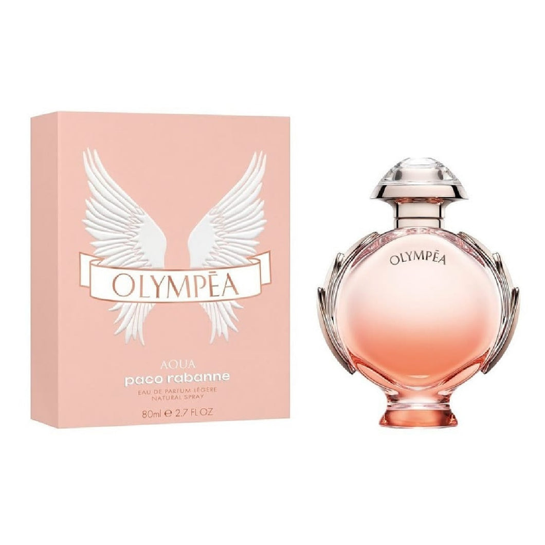 Olympéa Aqua de Paco Rabanne es una fragancia de la familia olfativa Floral Acuática para Mujeres. Olympéa Aqua se lanzó en 2016. Olympéa Aqua fue creada por Fanny Bal, Anne Flipo, Dominique Ropion y Loc Dong. Las Notas de Salida son notas acuáticas, bergamota de Calabria, naranja, petit grain y toronja (pomelo); las Notas de Corazón son flor de jengibre, jazmín, flor de azahar del naranjo, durazno (melocotón) y rosa; las Notas de Fondo son sal, vainilla, ámbar gris, madera de cachemira, sándalo y benjuí.