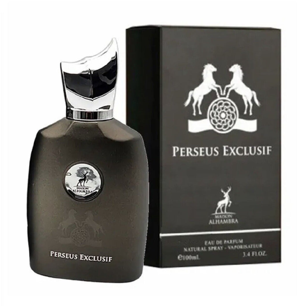 Perseus Exclusif de Maison Alhambra es una fragancia de la familia olfativa Ámbar Amaderada para Hombres. Las Notas de Salida son cardamomo, heliotropo, pimienta rosa y bergamota; las Notas de Corazón son almendra amarga, lavanda, jazmín y geranio; las Notas de Fondo son vainilla, madera de gaiac, madera de oud, sándalo y ámbar.