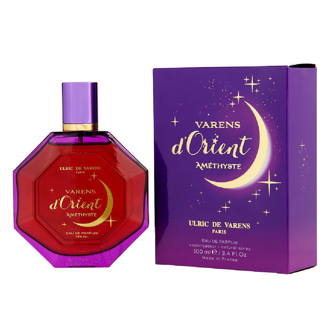 Varens d'Orient Amethyst de Ulric de Varens es una fragancia de la familia olfativa Ámbar Floral para Mujeres. Las Notas de Salida son almendra, naranja y pimienta rosa; las Notas de Corazón son heliotropo, jazmín y rosa; las Notas de Fondo son vainilla, ámbar y almizcle.
